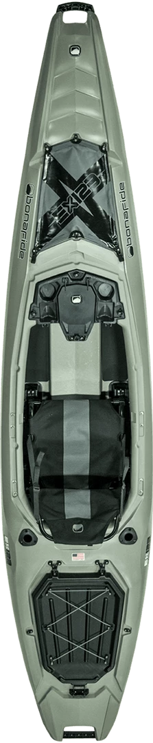 Whether lake fishing, river fishing, inshore or offshore fishing, the Bonafide RS117 “RISE Series” is truly an incredible fishing kayak, ready for all water environments. The RS117 offers a new standard for budget-conscious kayak anglers, providing them an affordable opportunity to RISE up into a premium, authentically-designed fishing kayak that’s made in the USA! With a Hybrid Catamaran hull (similar to our SS series), the RS117 is a very standable platform that offers an excellent balance of stability and paddling performance. Add in the top-notch deck layout with all day comfort and an “it just makes sense” array of features, and the RS117 is the perfect boat to get you out on the water, paddling and fishing, with friends and family! The RS117 maintains a modest width of just 33.5 inches, but the stability and tracking out performs many wider (and heavier) kayaks. The RS117 weighs in at just 77 (honest) lbs. Comfort and organization are key components of the RS117. The new Stadium Seat is light weight, easy to adjust, and has two seating positions, allowing all day comfort to make those long days on the water possible. From bow to stern, a wide array of features such as YakAttack MightyMount XL track, centralized storage pod, Shield Frontwell Cover with integrated Paddle Pouch, and forward transducer friendly scupper, make the RS117 one of the most fully featured values in kayak fishing. Getting on the water is easier with the RS117. The oversized FatGrip Handles (bow and stern) are integrated to the hull in ergonomically friendly locations, making carrying comfortable and easy. Side handles assist in car topping, and are designed to retain your paddle or fishing rod. To top it off, the Bonafide Limited Lifetime Hull Warranty gives you peace of mind. It’s our promise to you that we stand behind each and every one of our products. Whether you’re an experienced kayak angler looking for the next sit-on-top fishing kayak, or are just starting out, we want to be part of your next adventure. You only get one life. Live the Story You Want to Tell™ in your Bonafide kayak!