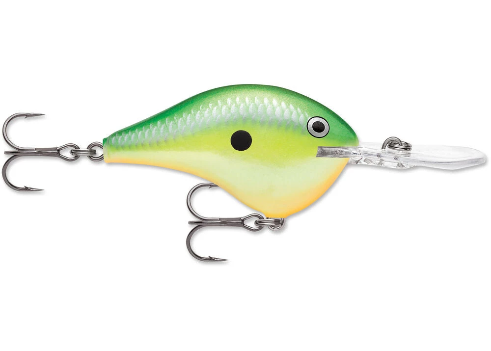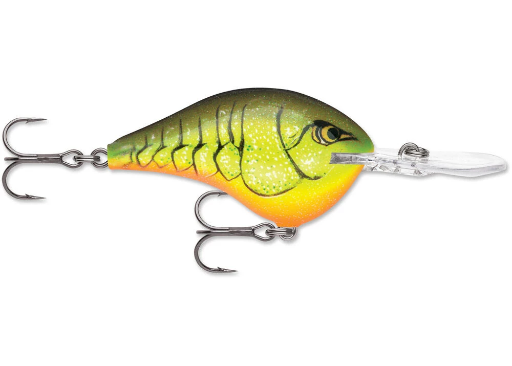 The DT® (Dives-To) series of crankbaits, dive fast to a preset depth and stay in the “strike zone” longer than any than other crankbait on the market. Made from the top seven percent of balsa wood, this consistently perfect wood combined with carefully placed internal weights, tapered fuselage and thin tail design creates the ultimate crankbait action, found only in the DT family. Ultra-thin polycarbonate lip digs the bait down quickly to desired depth. Swimming with a side-to-side action only balsa crankbaits can achieve, the DT cranks deep, yet pulls with ease. Perfectly weighted to rest in a “quick-dive” nose down position allowing for immediate descent to desired depth, the DT® can be easily cast 150 feet. Simply put, the farther the cast, the longer the bait stays in the strike zone. It’s the most effective way to cover more water and catch more fish. Internal baritone rattle is tuned for best sound performance. Premiere finishes in all the right color patterns, finished with 3D holographic or painted eyes. All come with premium VMC® black nickel hooks. Each lure is hand-tuned and tank-tested to swim perfectly right out of the box.