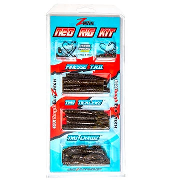 A perfect way to get started fishing the incredibly effective Ned Rig technique, the Ned Rig kit features the most popular and versatile 10X Tough ElaZtech® finesse baits and ShroomZ™ jigheads. Each kit includes Finesse TRD™, TRD TicklerZ™, and TRD CrawZ™ softbaits in the Green Pumpkin color along with Finesse ShroomZ™ jigheads in 1/6 and 1/10 oz weights. Ideal for bass and a variety of other fresh and saltwater fishing. Just grab a kit and go fishing!