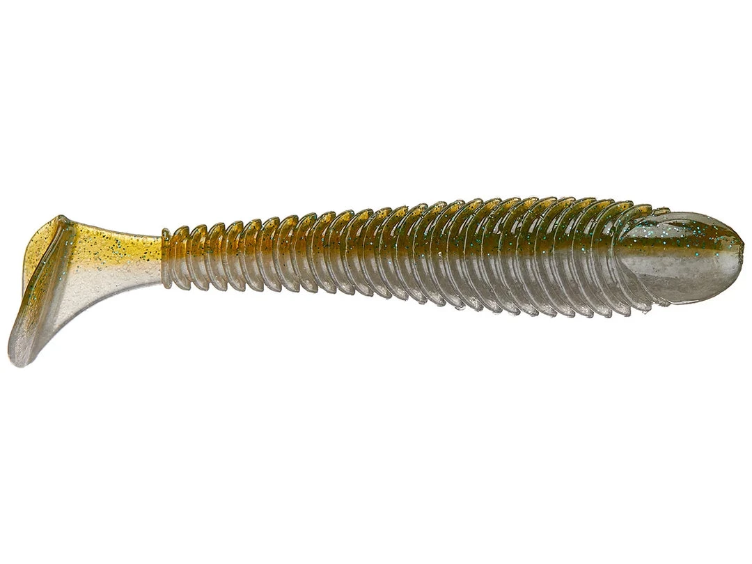 The in line ribs and below the belly boot style tail on the Saucy Swimmer are designed to grab and disperse water while swimming to give the tail an irresistible wagging kick and the body a natural wobbling motion. Use the Saucy Swimmer on a light weighted hook for shallow fish or rig it on a jig head for suspending deep fish. Sauce up a vibrating jig to amplify thumping action or use on spinnerbaits and buzzbaits for a more life like bait profile. Available in 3 different sizes and a variety of delicious colors to match the forage in your water. All googan baits are infused with Slaunch Sauce and come aligned in clam packs giving you top notch action as soon as it hits the water.